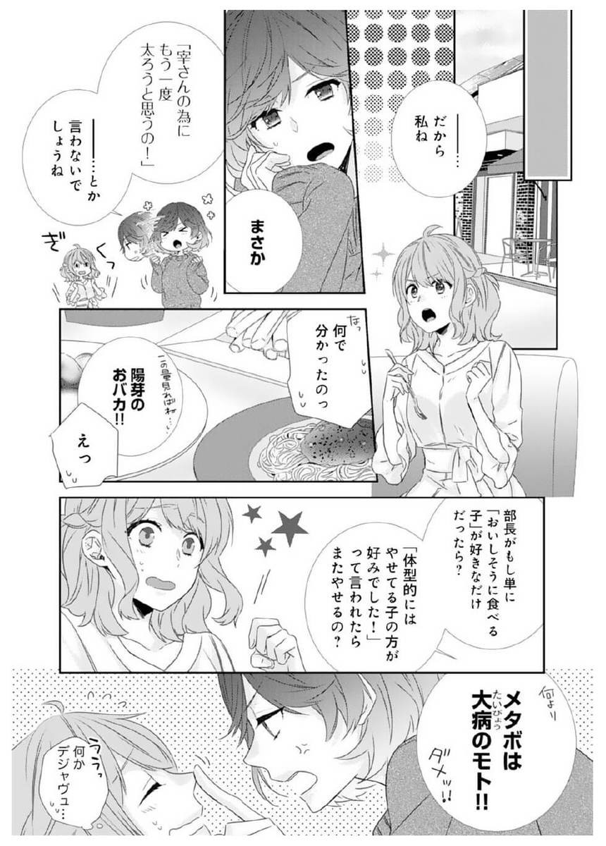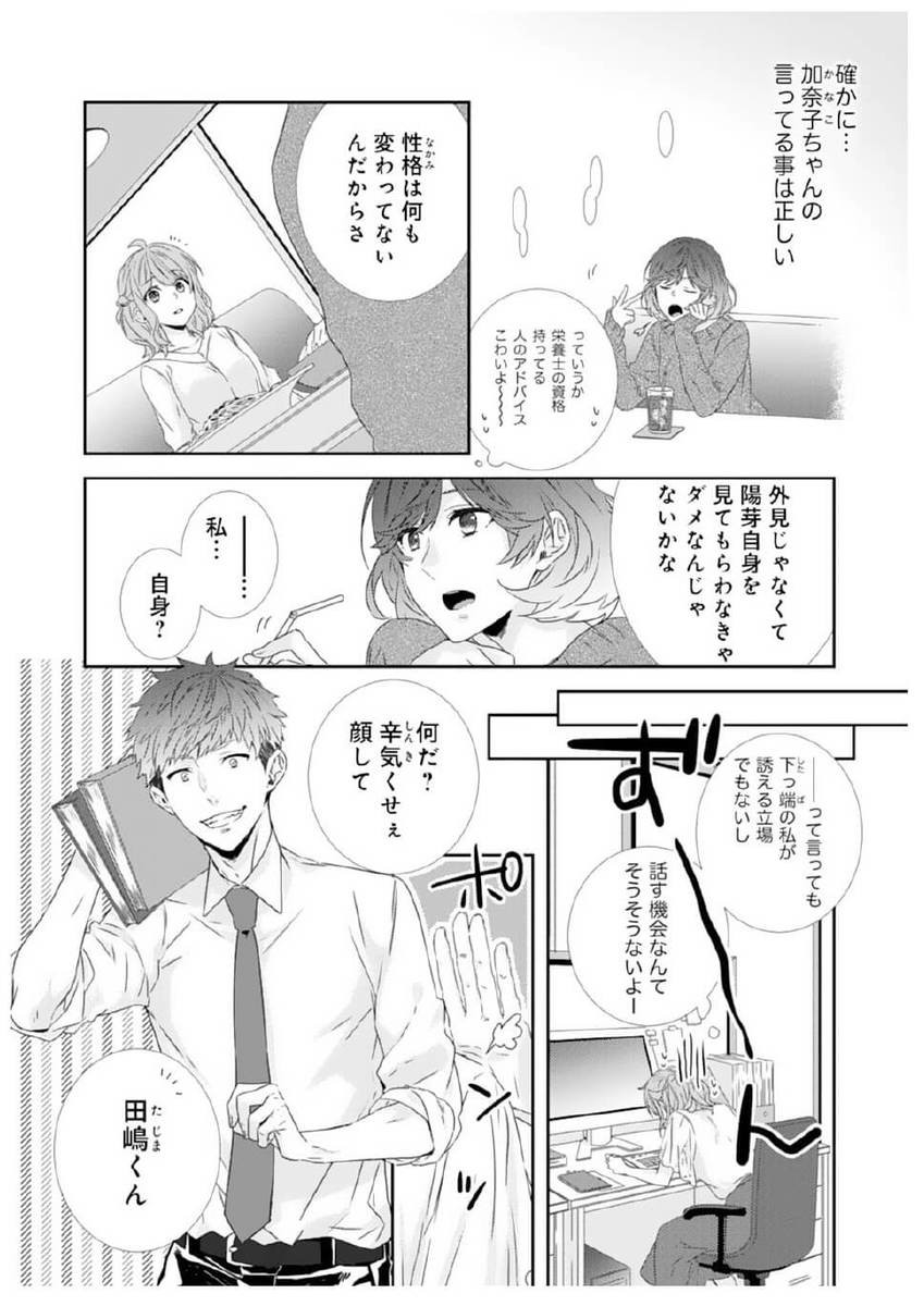 もう一度、彼に会いたい――その想いを果たすため、一念発起して50kgのダイエットに成功! 晴れて同じ会社に就職するが、1年経っても彼を見つけることができずにいた。