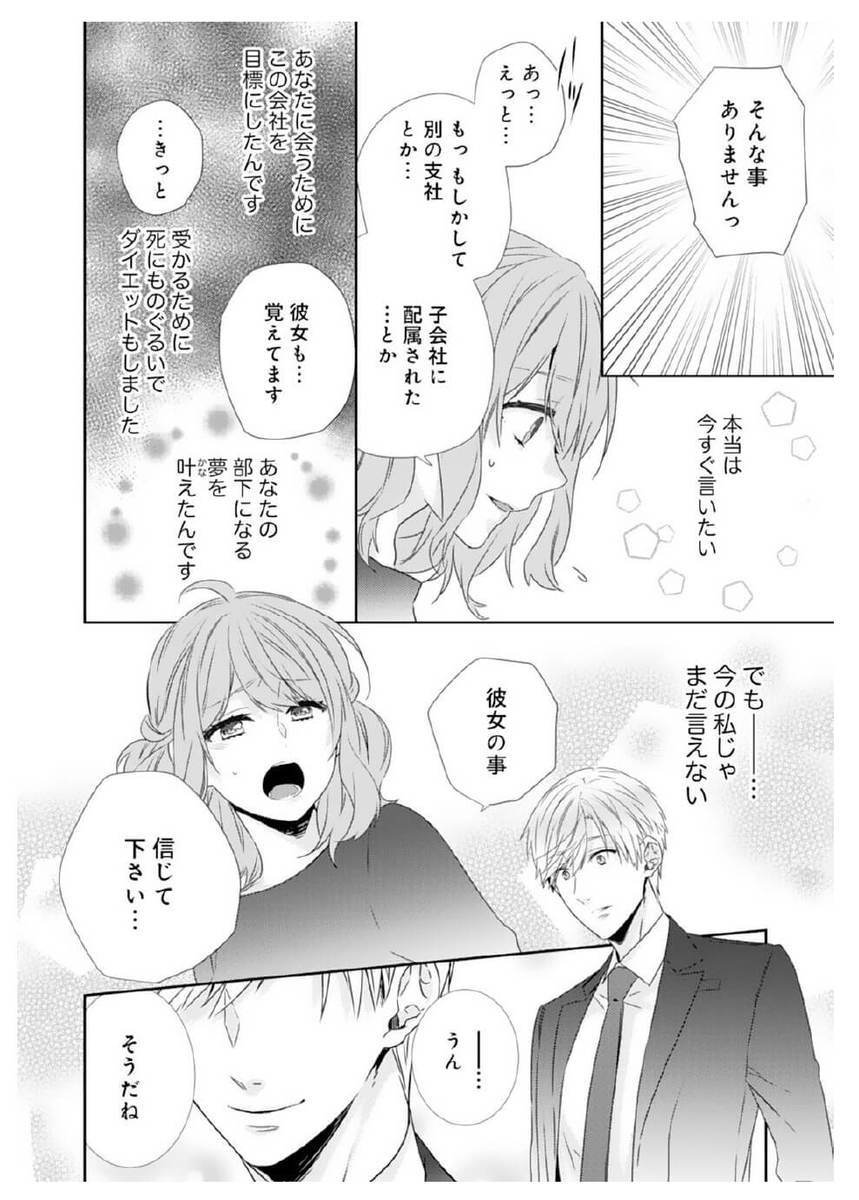 もう一度、彼に会いたい――その想いを果たすため、一念発起して50kgのダイエットに成功! 晴れて同じ会社に就職するが、1年経っても彼を見つけることができずにいた。