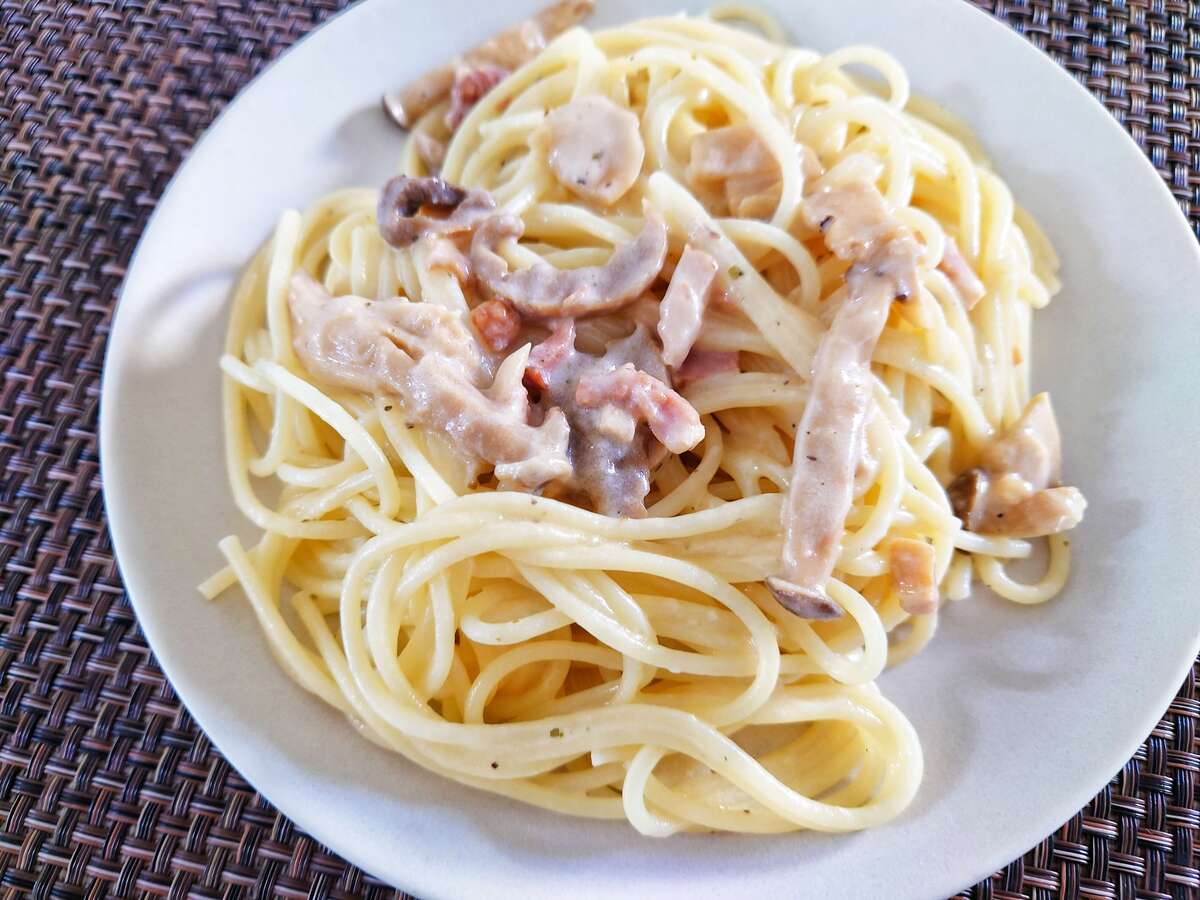 食べた瞬間、「良いレストランの味がする」と感動!!トリュフが香り、ベーコンの香ばしさが口に広がります。具がたっぷりソースに入っているため、プラスする必要もありません。