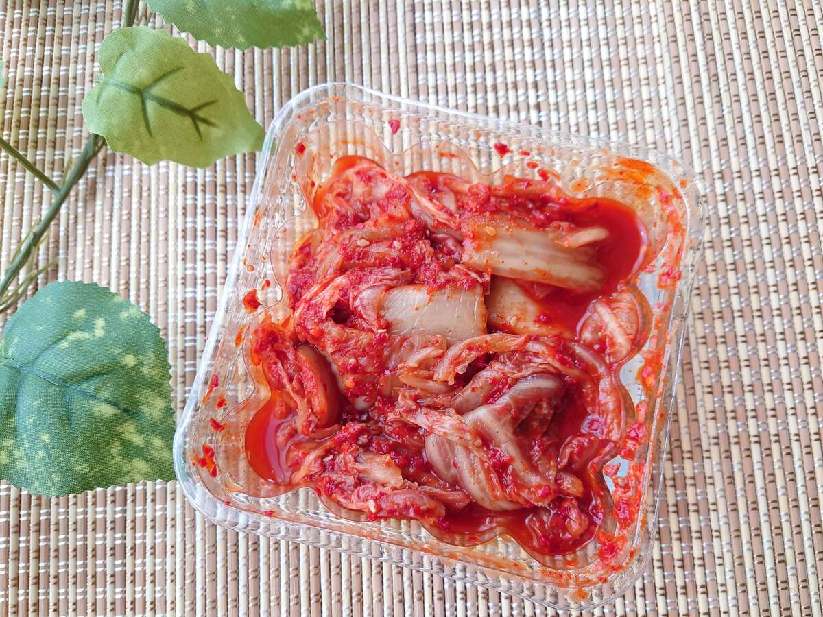 「英陽(ヨンヤン)」という韓国一の唐辛子産地の唐辛子を使ったヤンニョムで、日本産白菜が漬けられています。産地も季節毎に変えて、機械を使わず手作業で製造しているこだわりっぷり。“6月~11月中旬は長野県産、11月中旬~5月下旬は茨城県産と使い分けている”のだそう。
