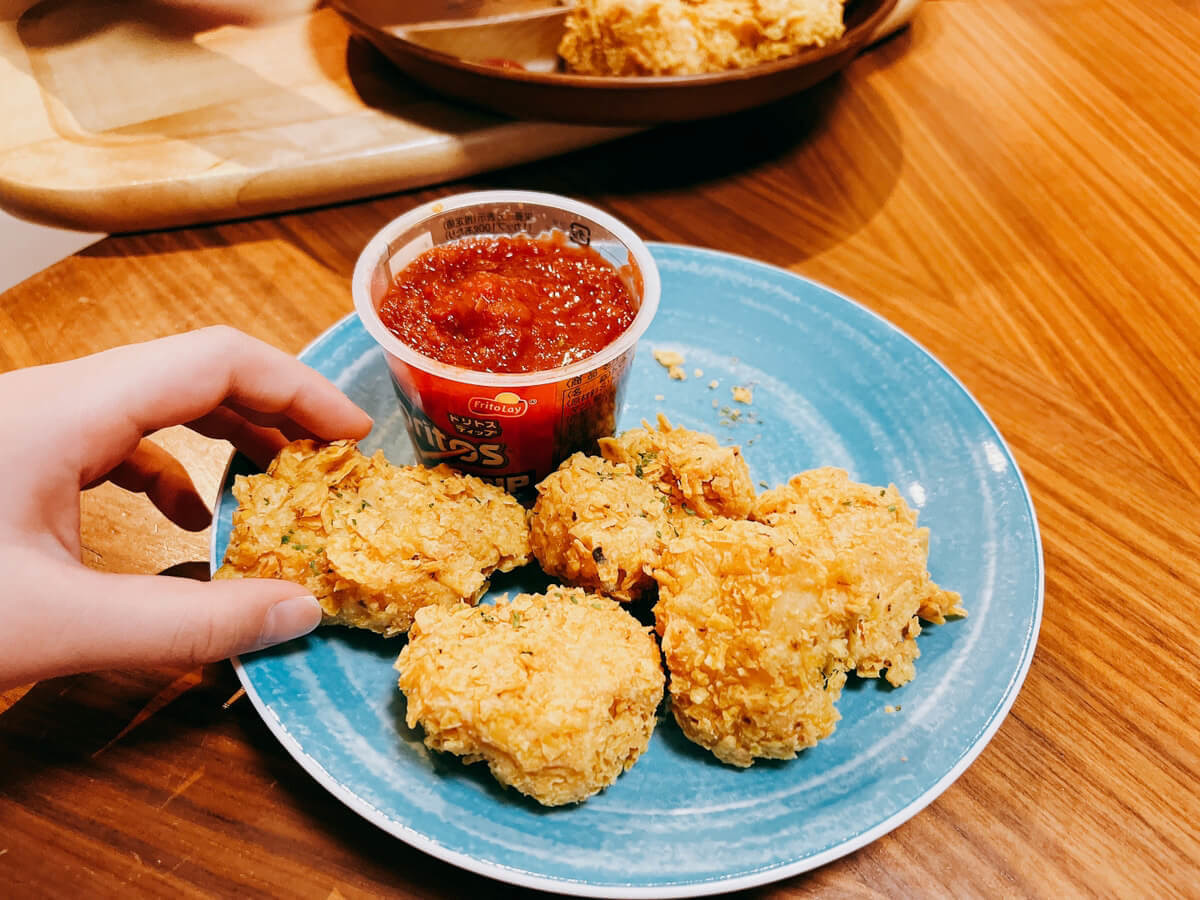 なんと、ドリトスを細かく砕いて衣として使うという、思い切ったレシピです!ドリトスにまぶして揚げるなんて、想像だけで“ザクッ!”とした音が聞こえてきます(笑)。
