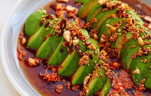 四川料理の「よだれ鶏」といえば、茹でた鶏肉にピリッと辛いタレをかけて食べる冷菜ですよね。そのタレ、アボカドにもよく合うんです!