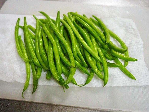 訪れたスーパーには太めのさやいんげんを取り扱っていなかったため、通常の太さで挑戦。