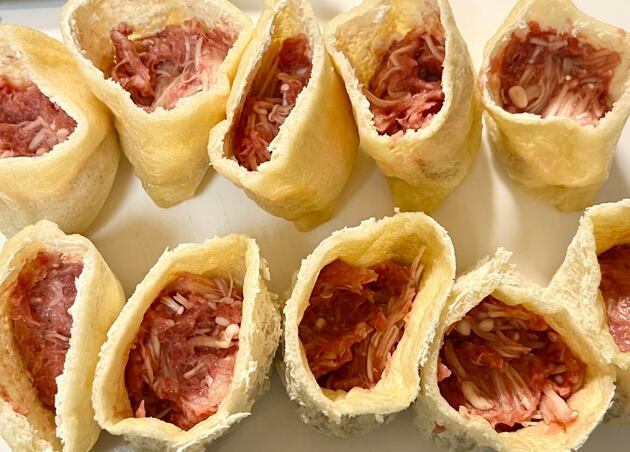 ひき肉にはえのきの旨味が、そして油揚げにはひき肉とだしの旨味がそれぞれ染み込んでいて、お店で出せば大人気メニューになりそうな味です!