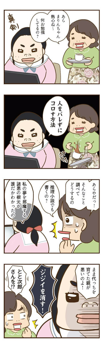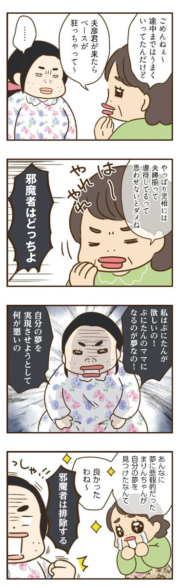 まま代を虐待ママにしようと企んでいたが、失敗に終わったまりんとトメ枝。