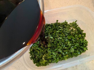 あらかじめ薬味のニンニク、長ネギ、生姜を細かく刻んでおきます。