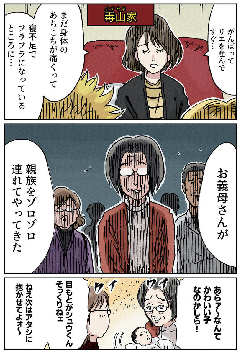 温かく迎え入れてくれた毒山家で、出産後受けてきた仕打ちを告白しました。