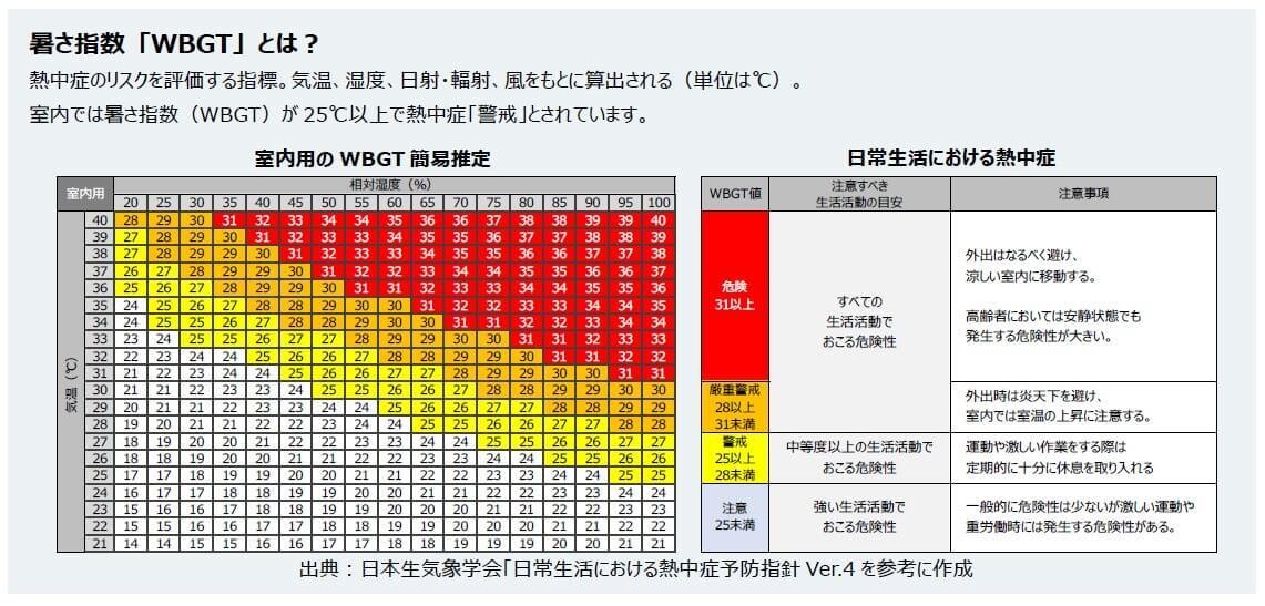 日中から湿度が高く蒸し暑い日や、熱帯夜の予報が出ている日は、寝ている間に室内の暑さ指数(WBGT)が高くなってしまうことがあります。