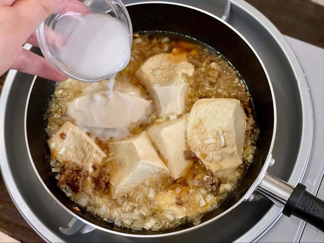 麻婆豆腐を作ったときに、水溶き片栗粉がダマにならないように混ぜると、豆腐が小さく崩れてしまうことはありませんか?