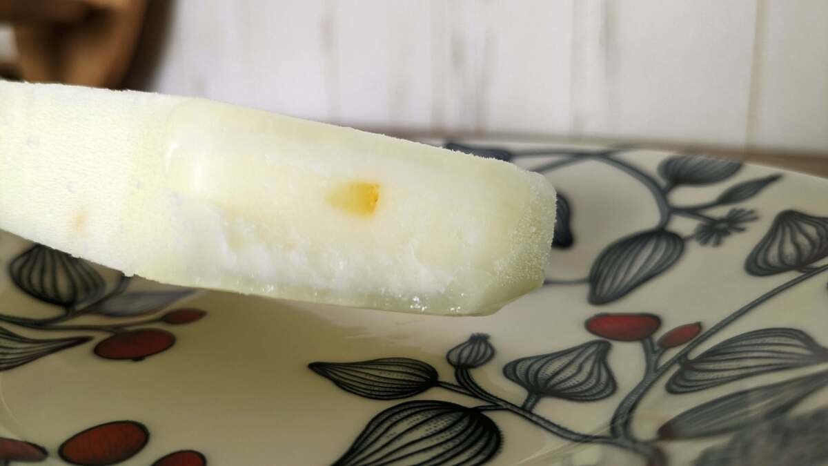 淡い黄色のアイスバーからは、ほんのりとゆずの香りが!爽やかで美味しそう。
