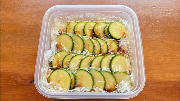 お手軽に作れる「漬けズッキーニ」の完成です!