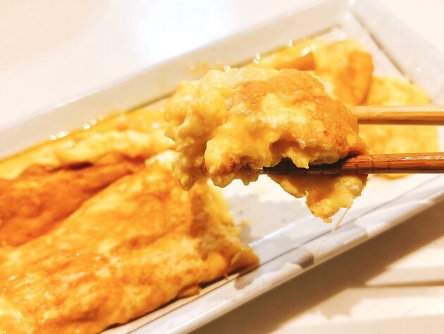 食べた瞬間は洋なのに、食べ終わると和食を食べた気分になる、ちょっと不思議な卵焼きですね。