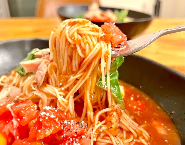 だからこそ、ただ混ぜるだけで、レストラン品質のイタリアントマトそうめんができちゃうんですね。トマトソースがパスタ以外でもこんなに合うなんて、驚きました。