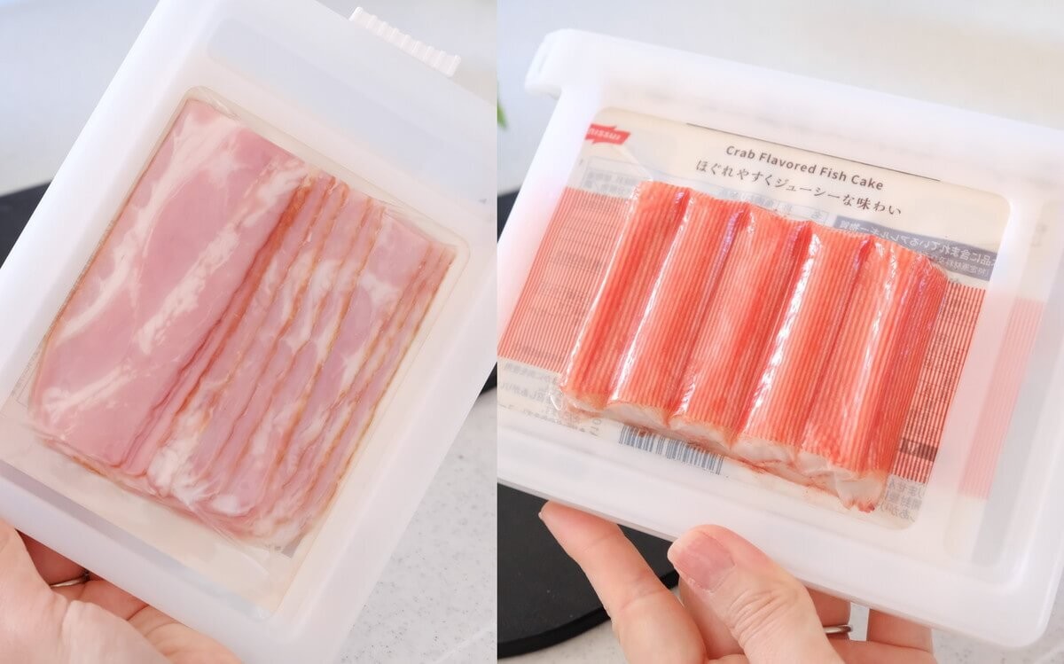 ハムの他にも、ベーコンやカニカマの保存にも使えます。