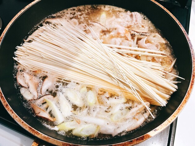 別鍋で茹でずに、乾麺のまま入れてOK!