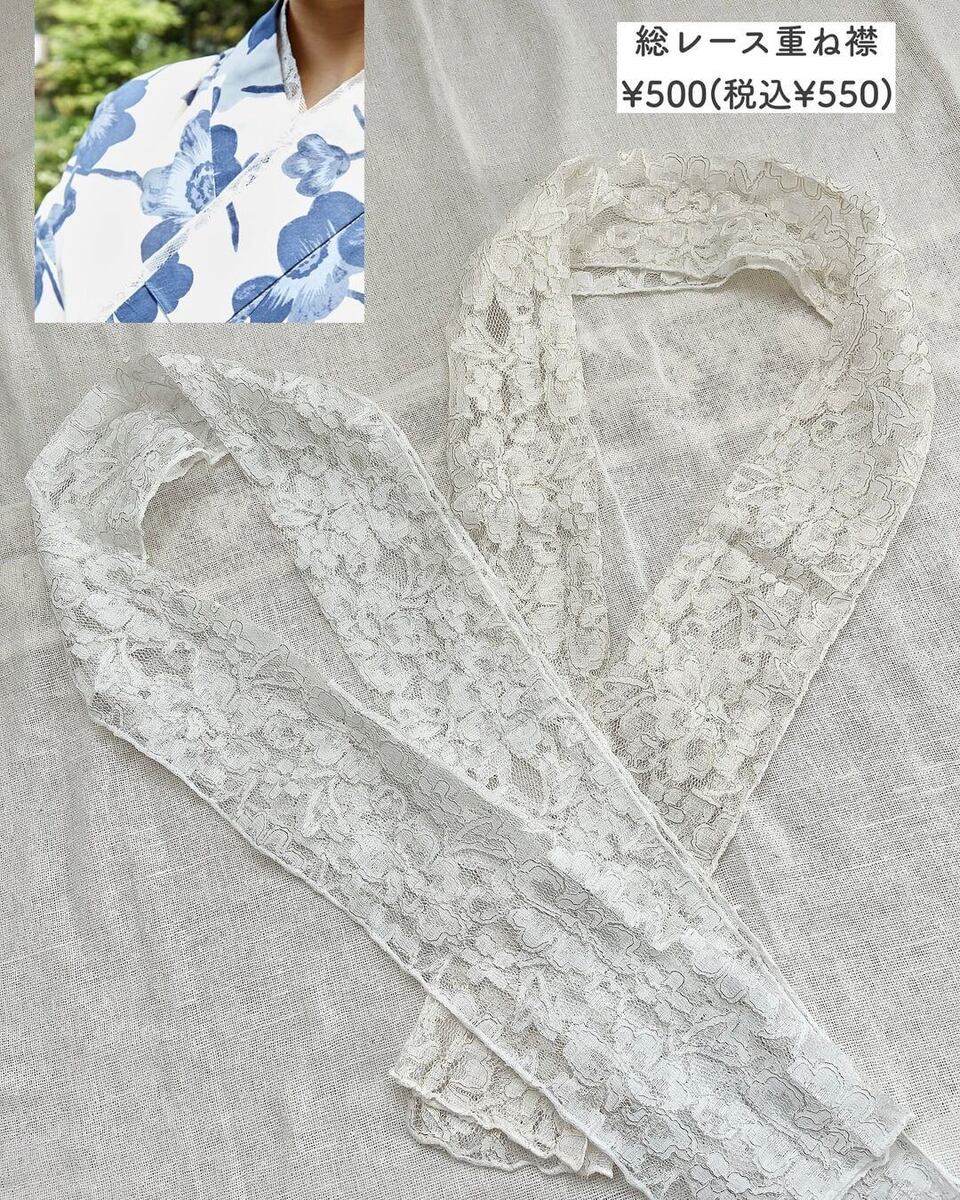 襟元に重ね付けすることで、ちらっと見える総レースが可愛い「総レース重ね衿(550円)」も見逃せません。