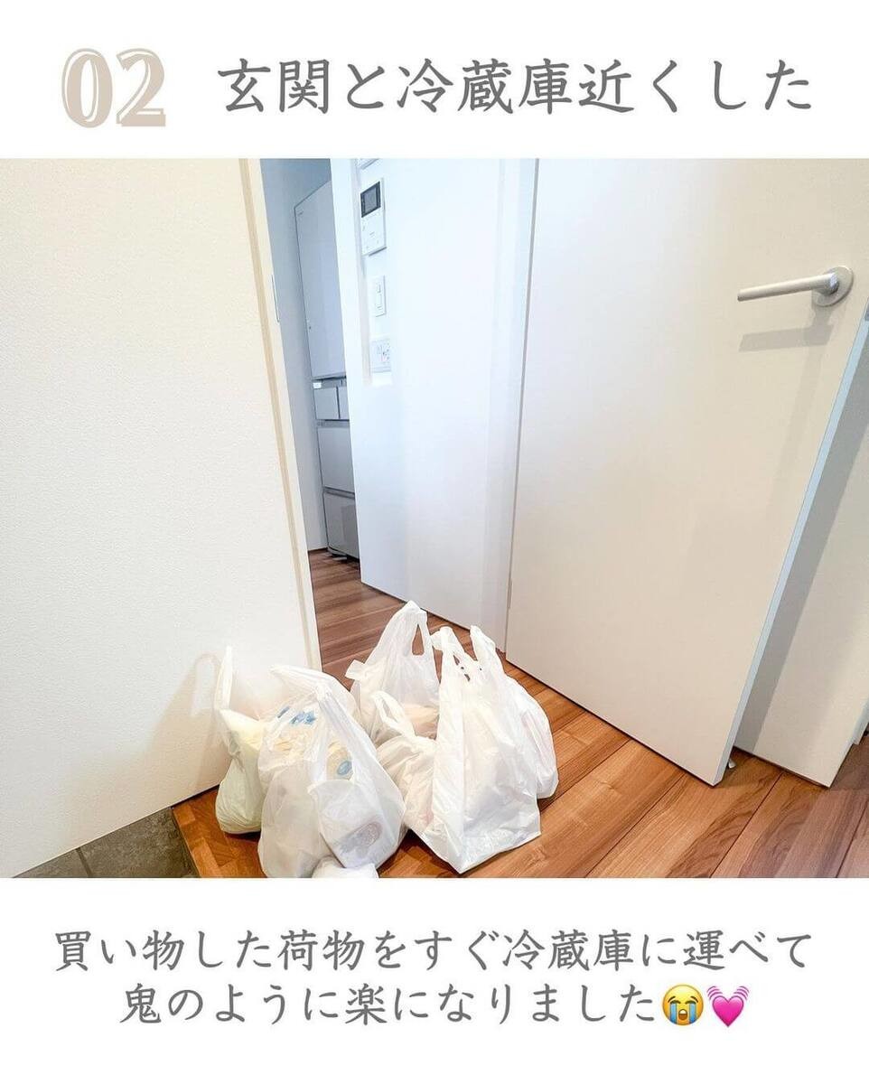 ②玄関と冷蔵庫を近くに
