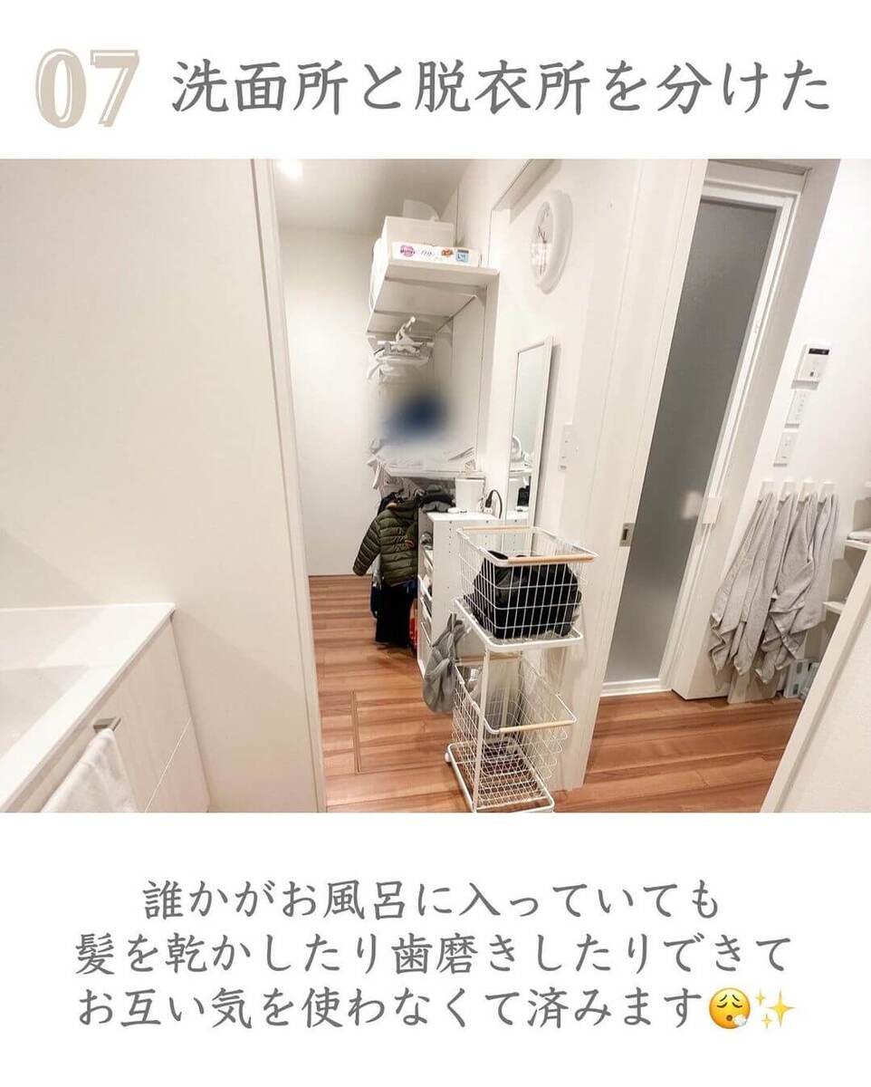 ⑦洗面所と脱衣所を分けた