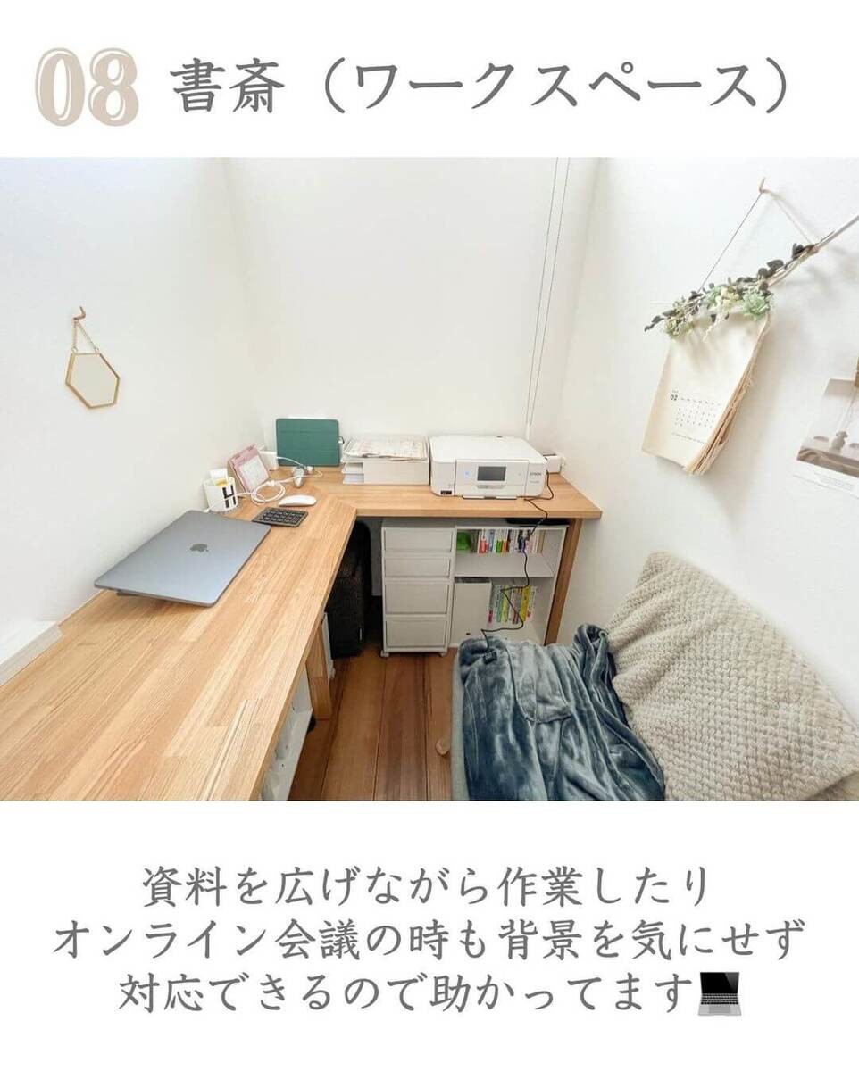 シンプリストちびかおさんのように専用の書斎(ワークスペース)を作っておけば、オンライン会議の時も背景を気にすることなく進められるんだとか!