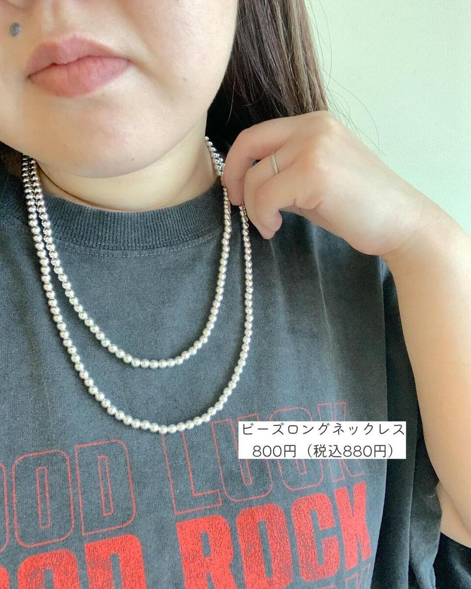 「ビーズロングネックレス(880円)」なら、よりエレガントな印象に♪
