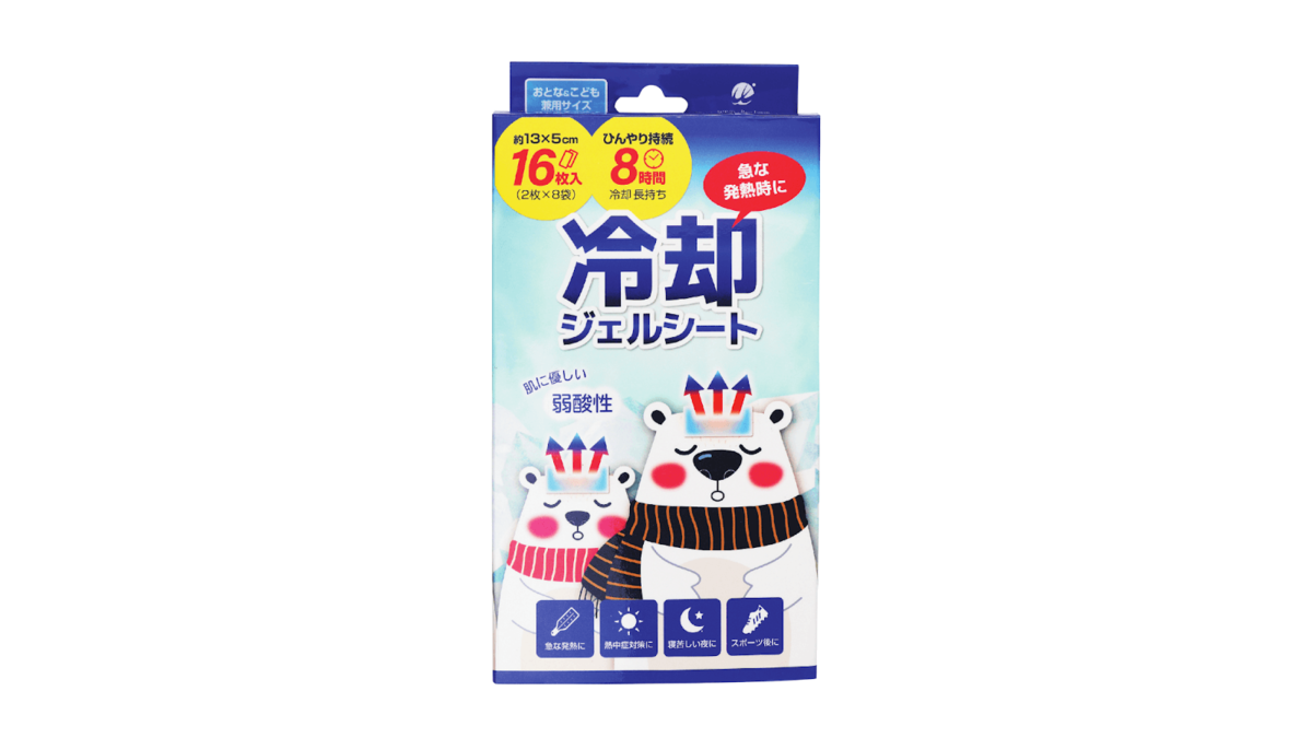 「冷却ジェルシート 16枚入り 199円(税込)」は、寝苦しい夜やお風呂上がり、仕事や勉強に集中したいときに、おでこなどに貼るだけでひんやり快適に過ごせます。