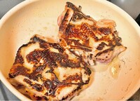 ②に片栗粉をまぶし、魚焼きグリルで焼きます。電子レンジの後に焼くことで外側がからりと仕上がるのだそう。上下を返しながら、こんがりするまで焼いてください。
