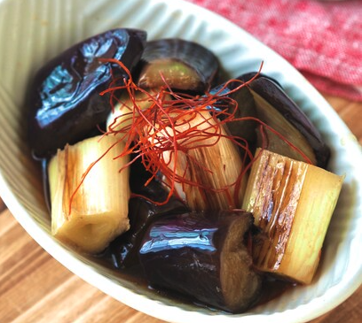 1つ目のレシピは、主婦のうさぎさんが紹介した「茄子と白ネギの焼き浸し」です。