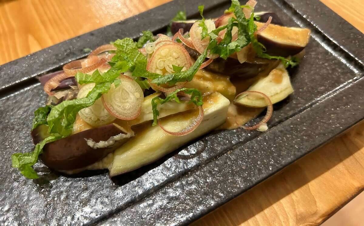 なすの肉巻きを食べた瞬間に、口の中にしょうがの香りが広がり、とてもさっぱりした味わいです。