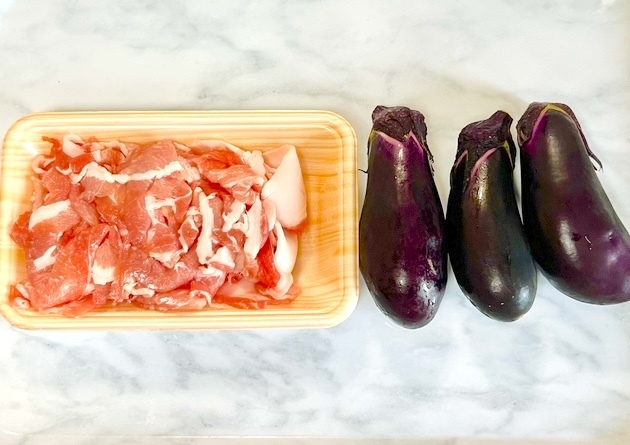 ニンニクとポン酢には、相性の良いナスと豚肉を合わせます。