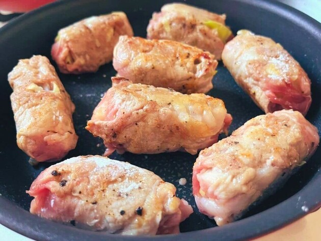 作り方②①を豚こま切れ肉で巻く