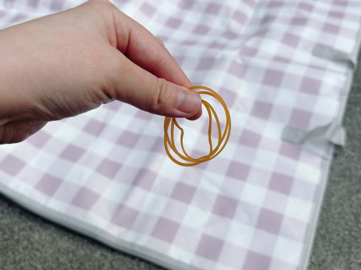 そんな靴頼みの対策も、今日でおさらば!「輪ゴム」を使うだけで、レジャーシートが風で飛ばされにくくなりますよ。