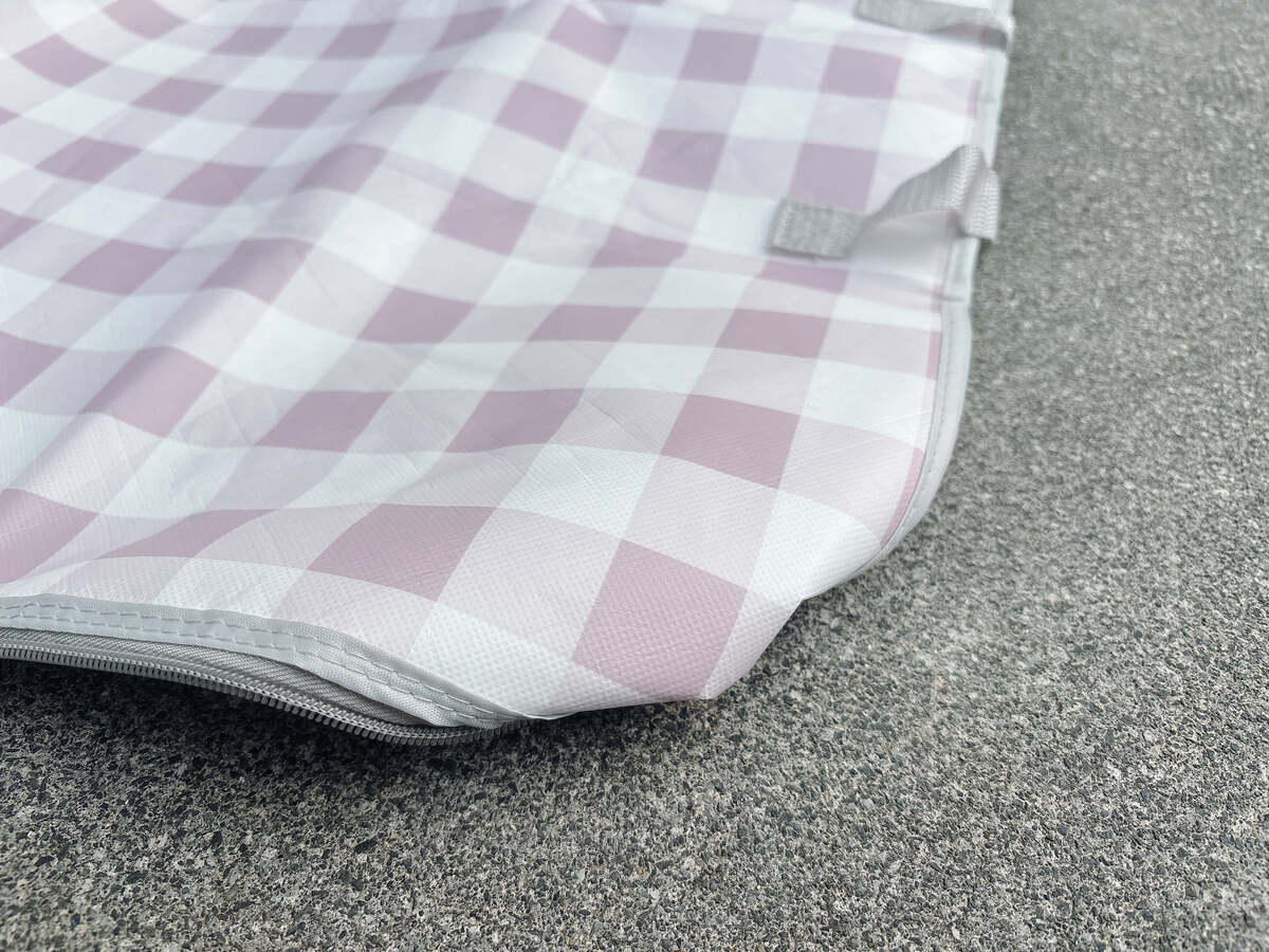 結んだ部分を、レジャーシートの内側に折り返します。4つの角すべて行ってくださいね。