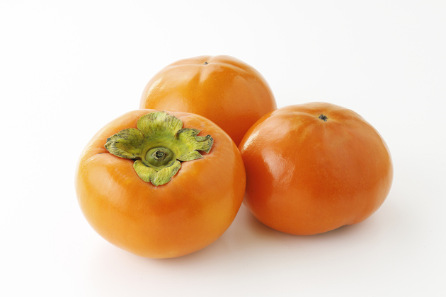 太秋柿など一部の柿を除き、柿は完熟すると鮮やかなオレンジ色に色付きます。全体的に色付きがよく、張りがあるものを選んでください。