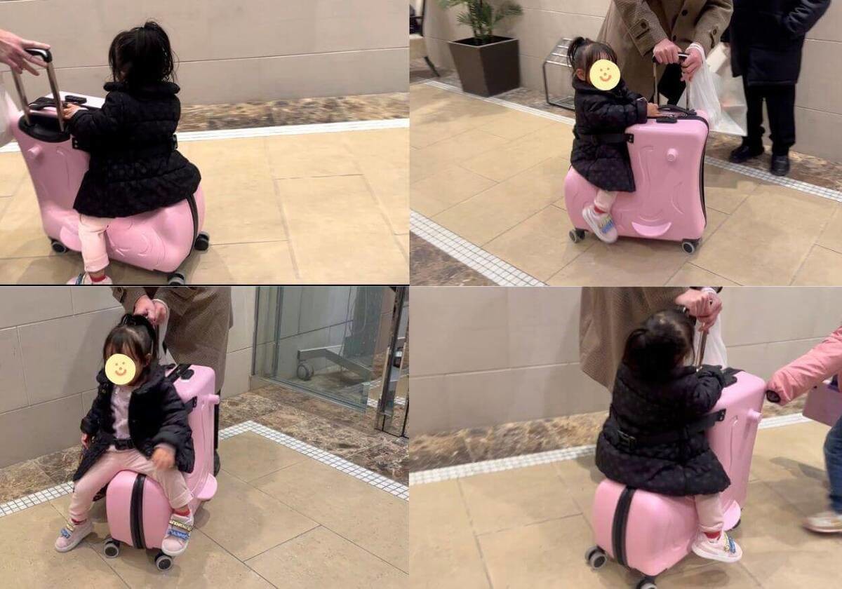 子連れ旅行は荷物が多くなるのでベビーカーまで持っていけない。そんなときに大活躍なのがこの子供が乗れるキャリーケースです。