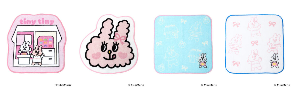 コラボレーションアイテムは、今回のために描き下ろされ、「バニーコンビニ」の物語が繰り広げられるバニータウンに「tiny tiny」が期間限定のポップアップストアを出店!”というテーマを元にしたグラフィックの服飾雑貨が展開されます。