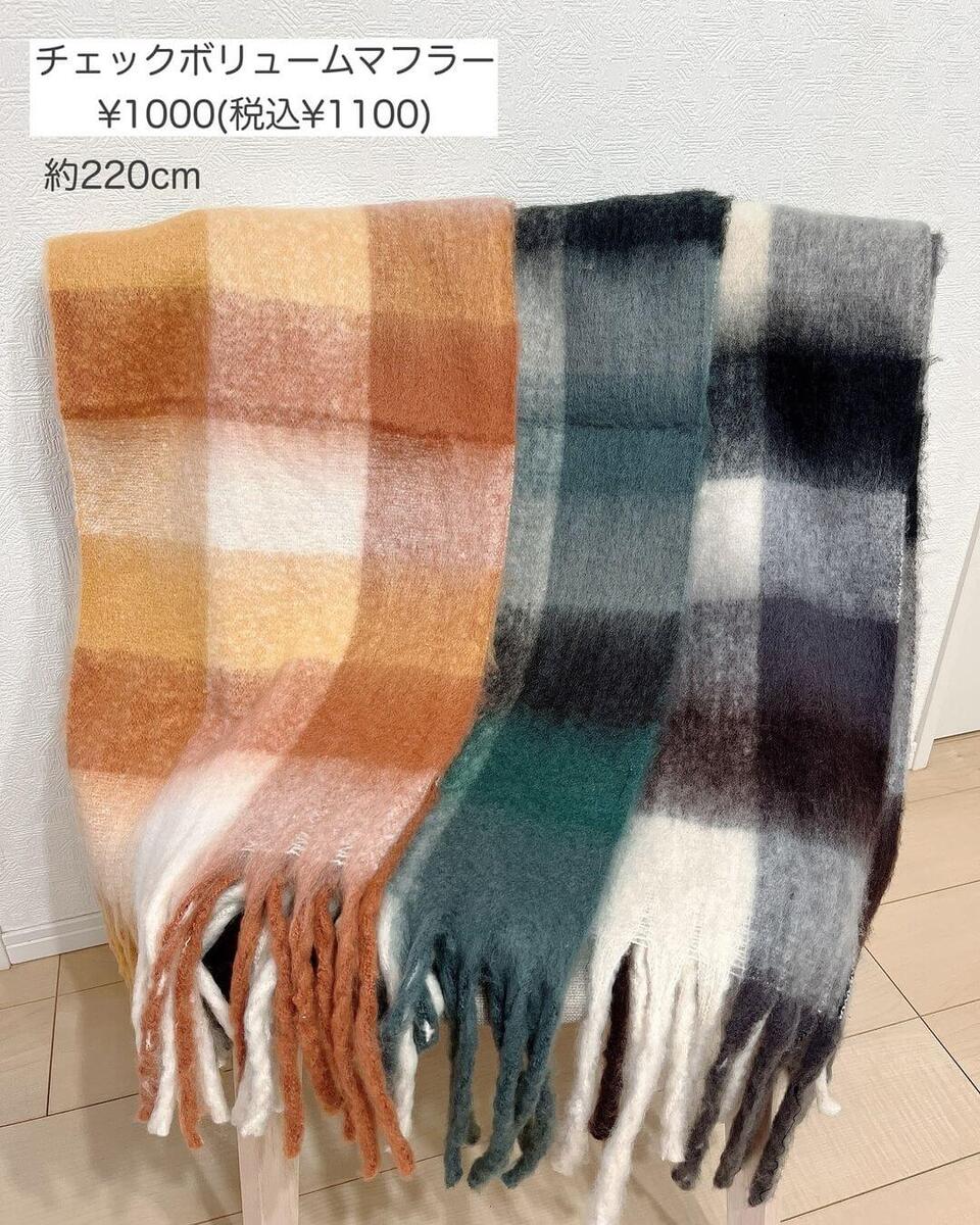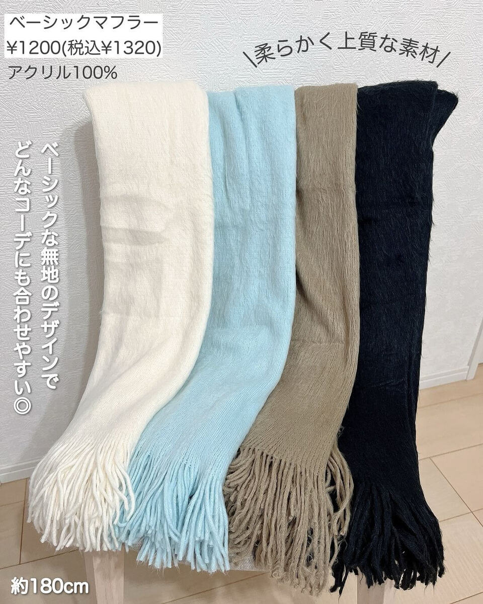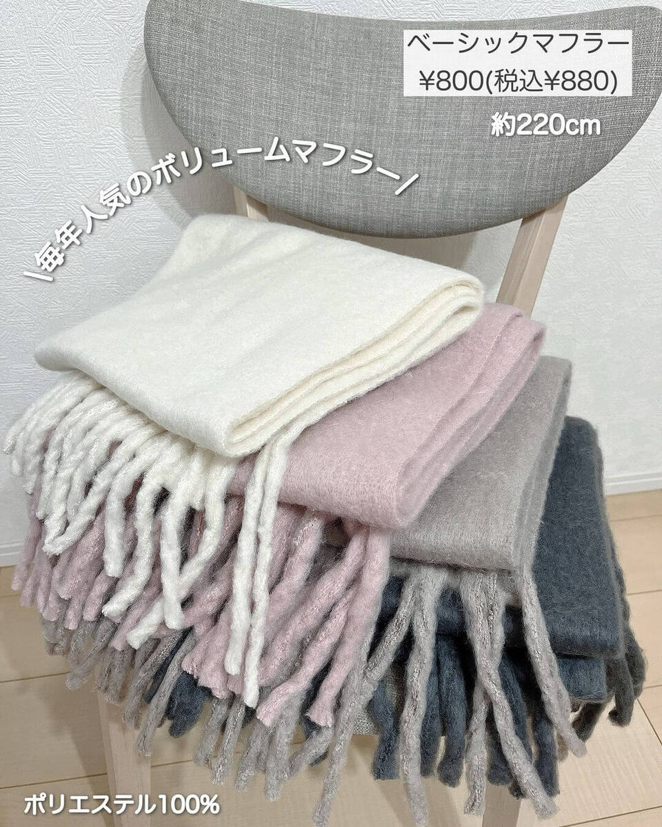 3COINSのマフラーはどれも1,000円前後と驚くほどリーズナブル!