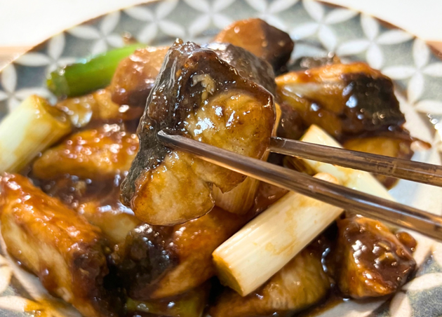 片栗粉をまぶしたブリにはタレがよく絡んでいて、濃いめの味付けでご飯がすすみます。