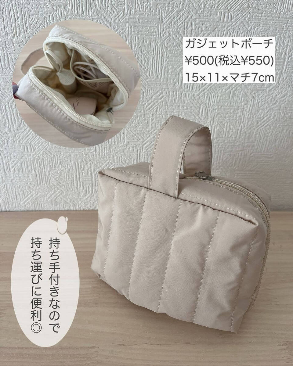 3COINSスタッフ@3coins_shihoさんさんおすすめの、ガジェット類をまとめて収納できるポーチや、パソコンやタブレットを持ち歩けるケースを紹介しました。