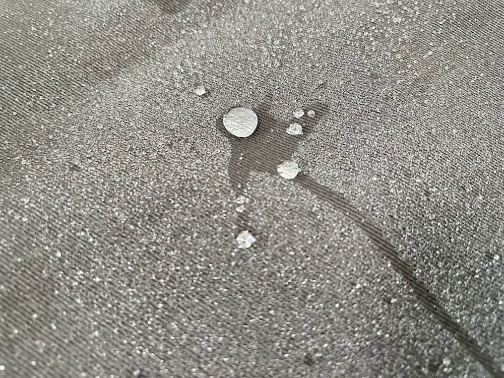 やはり気になるのは、「超撥水」の真偽ですよね。さっそく生地に水を垂らして実験してみました!