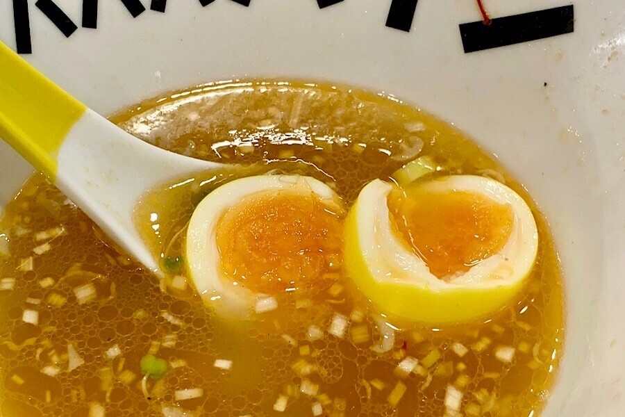 パイナップル味付玉子のほうがパインを感じました。普通の味玉よりも甘さが強いです。食べ進めていくと、ほんのりとしたフルーツの甘さで、塩に角がなくなっていき、まろやかになって終わりました。