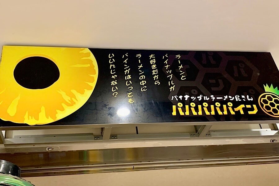 店名が独特なラーメン店ですが、メニューも個性的でパイナップル入りラーメンが食べられるとのこと。