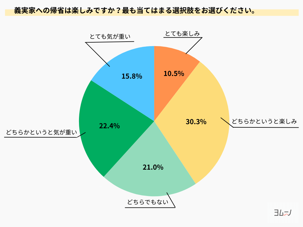 義実家への帰省を「気が重い」と思うか「楽しみ」と思うか、その分かれ目は「義実家に対して気を遣うかどうか」「過去にイヤな思いをした事があるか」が関係ありそうです。