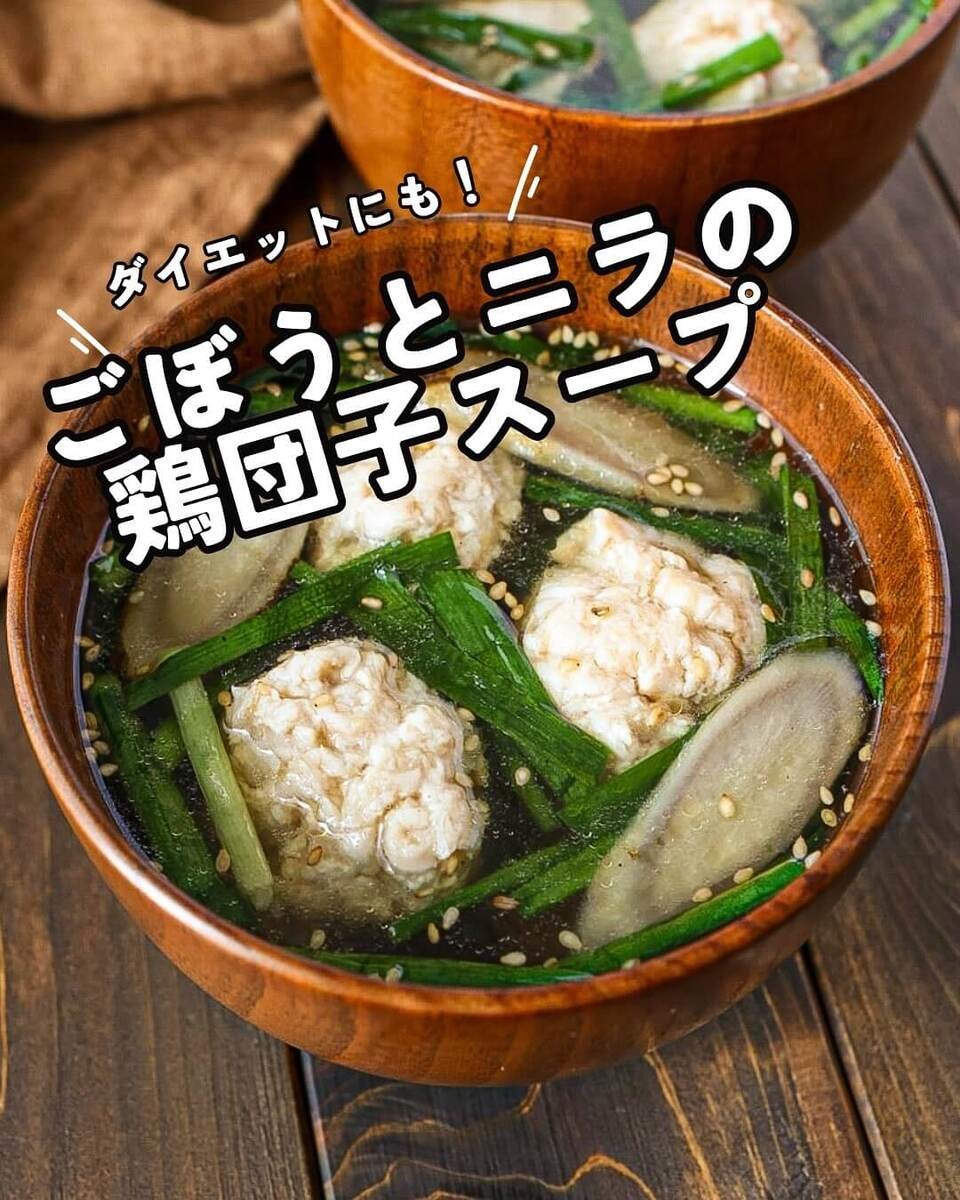 今回は寒い冬にぴったりなダイエットメニュー「ごぼうとニラの鶏団子しょうゆスープ」のレシピをまとめました。