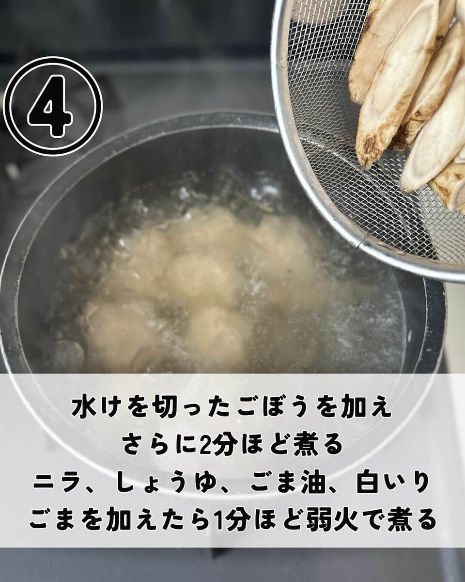 まいのごはん。さんの「ごぼうとニラの鶏団子しょうゆスープ」の作り方