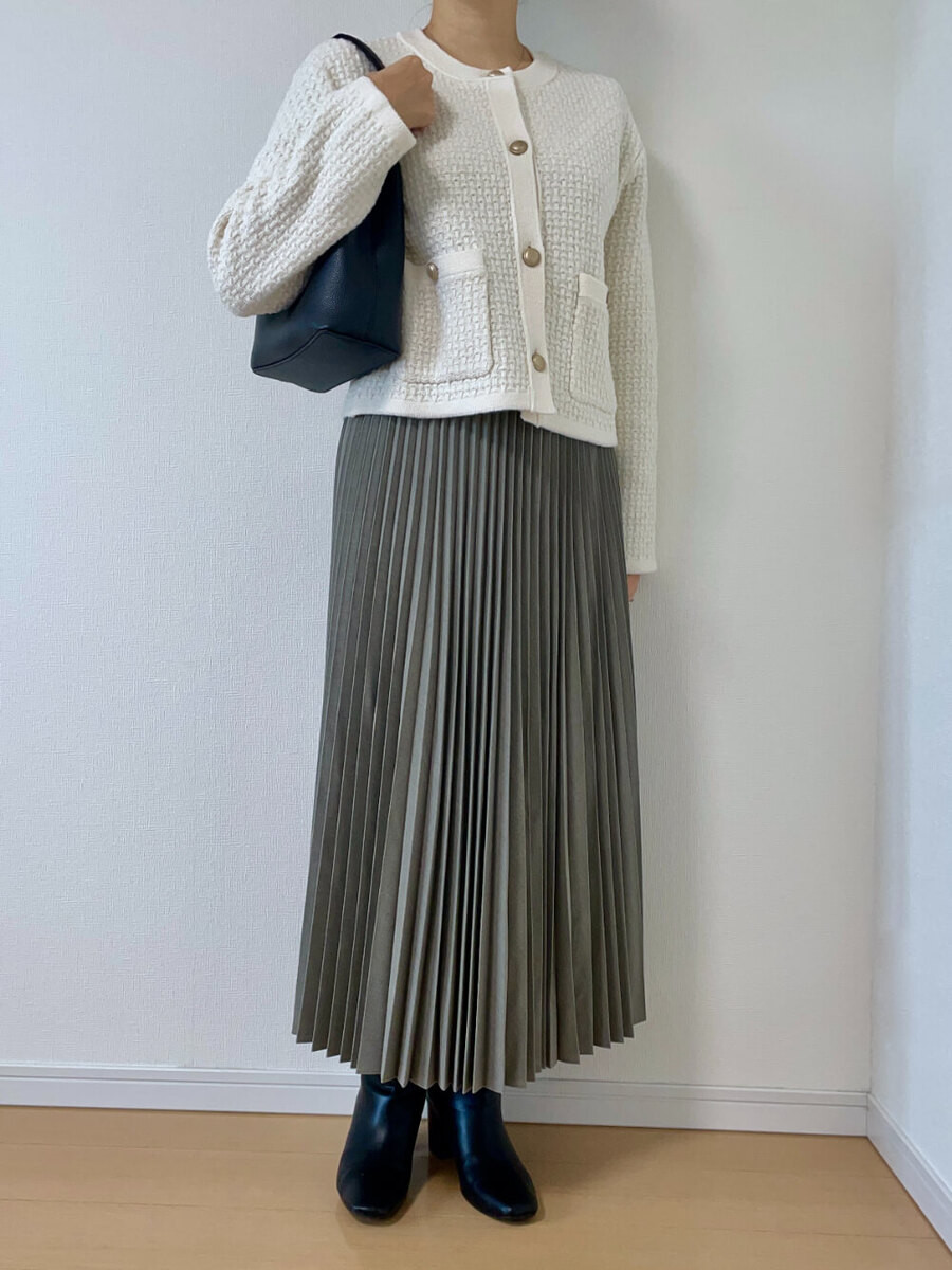 足元のバランスがとても気に入っており、冬はブーツとプリーツスカートのコーデがかなり増えそうです(笑)!