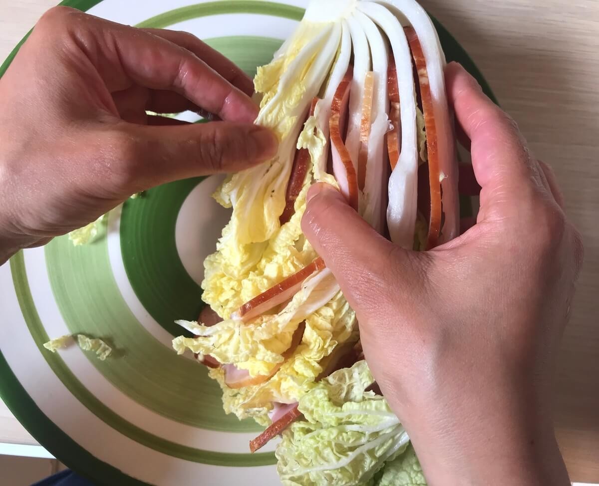 【白菜メインおかず】簡単レシピ1:ベーコンを挟む
