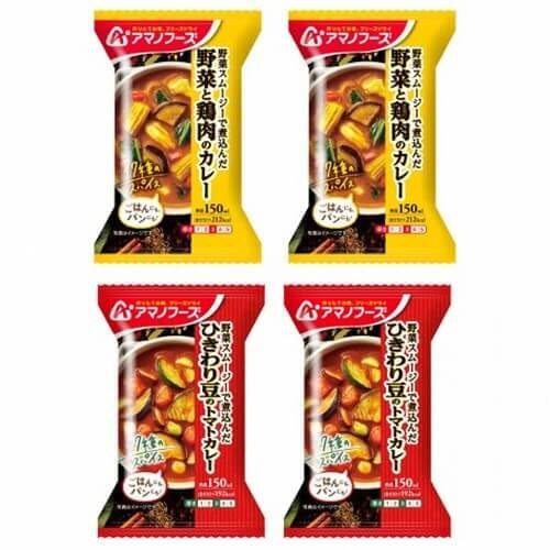 内容:野菜と鶏肉のカレー・ひきわり豆のトマトカレー<2種類×各2食>