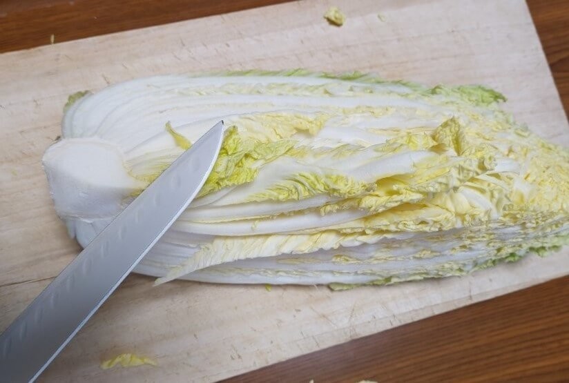 白菜の保存手順①斜めに包丁を入れて「芯を取る」