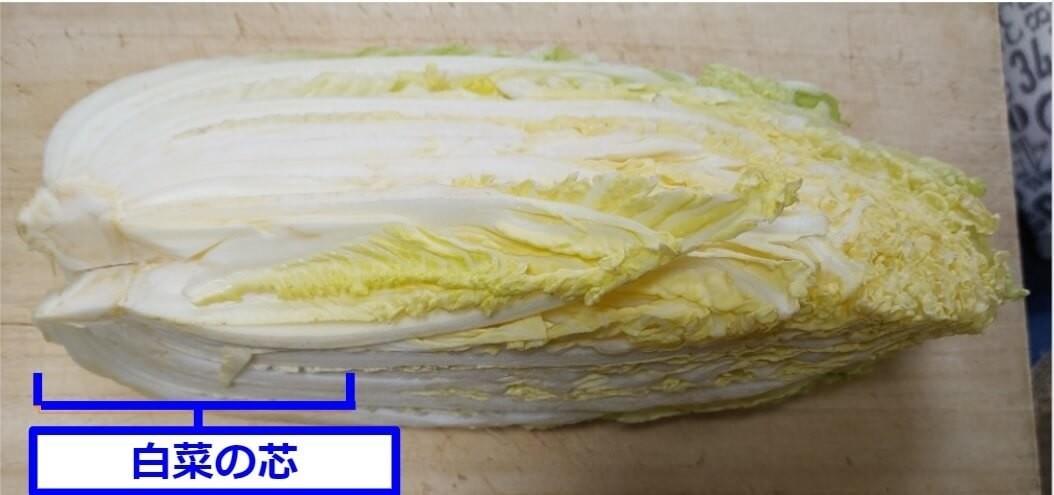白菜の芯は他の部位よりも栄養が豊富で、うまみが凝縮されています。白菜を使った鍋や煮ものを作るときは、味出しとして活躍します。
