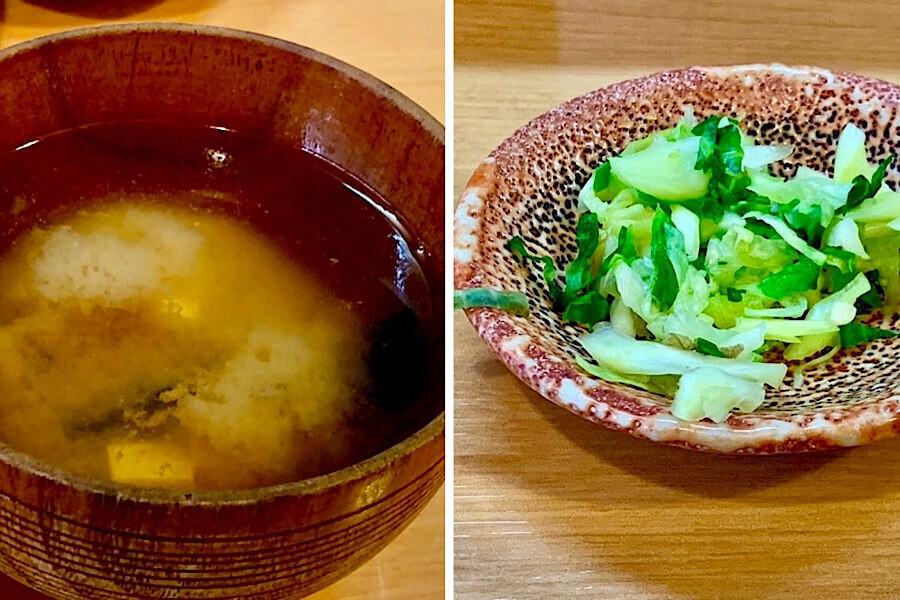 定食についてくるお味噌汁とお新香、千切りキャベツなどは全体的にやさしい味になっているので、ロースカツと交互に口に運んで美味しく食べることができました。